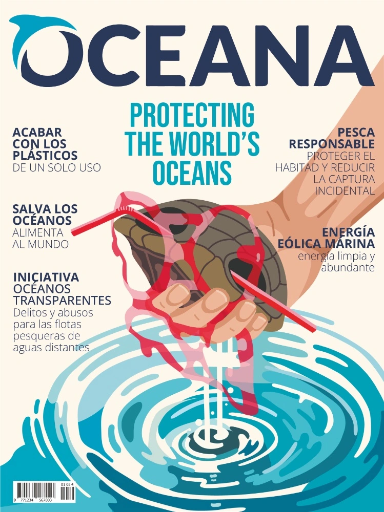 En este proyecto de concienciación del océano para la empresa Oceana tuve que crear la portada de su última revista, planteando un análisis de los colores y su simbología, donde una tortuga esta siendo tristemente retirada tras su muerte, donde se puede apreciar el peligro que suponen los plásticos para los animales marinos.