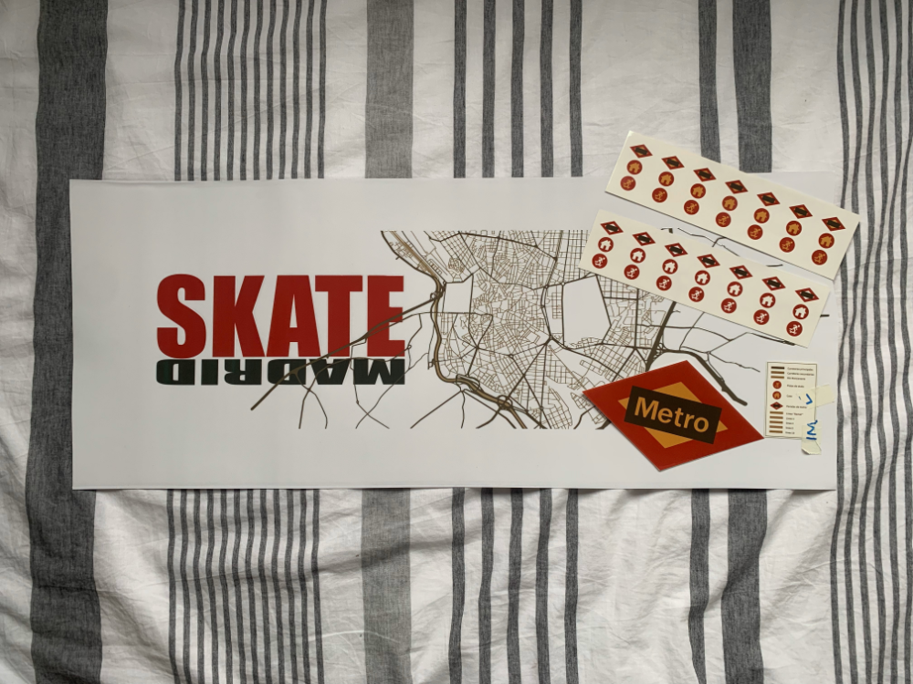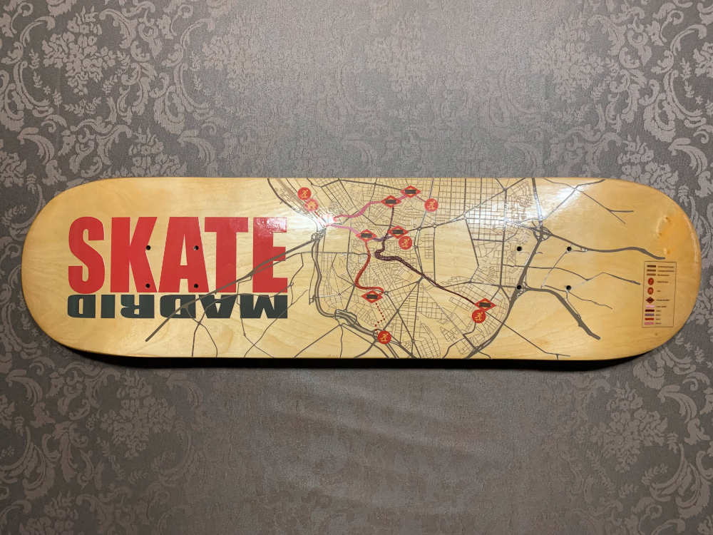 Este trabajo consistió en crear un mapa que representase lo que era para ti Madrid. En mi caso decidí crear a parte de un mapa un producto funcional, lanzándome con este nuevo reto personal donde quería aprender a crear mis propias tablas de skate a partir de materiales reciclados como fue la propia tabla que todos podemos conseguir por un modesto precio.