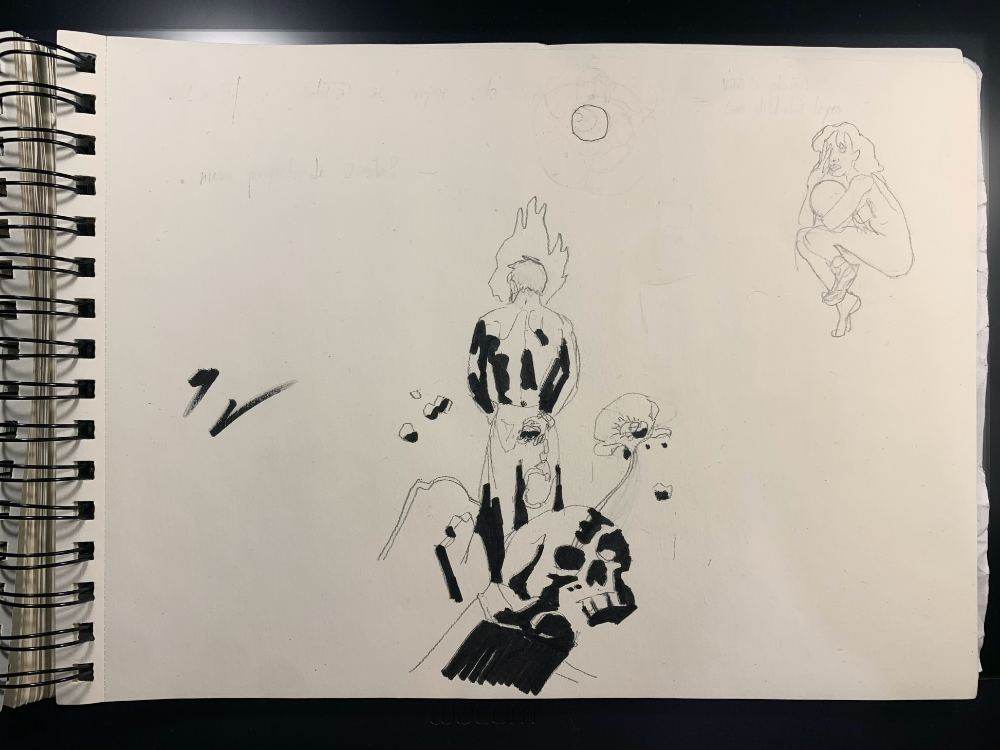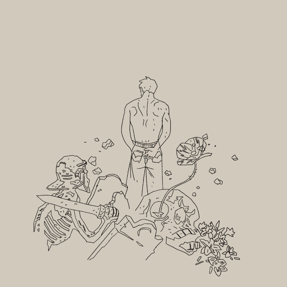Cada elemento conecta con partes concretas de la canción: la amapola representa a la mujer que lo seduce, la justicia lo persigue como un esqueleto armado, y él, de espaldas a todo, espera la salida de la luna, que simboliza el momento en el que acepta que su amor ha terminado. Un proyecto donde quise unir lo gráfico con lo emocional.