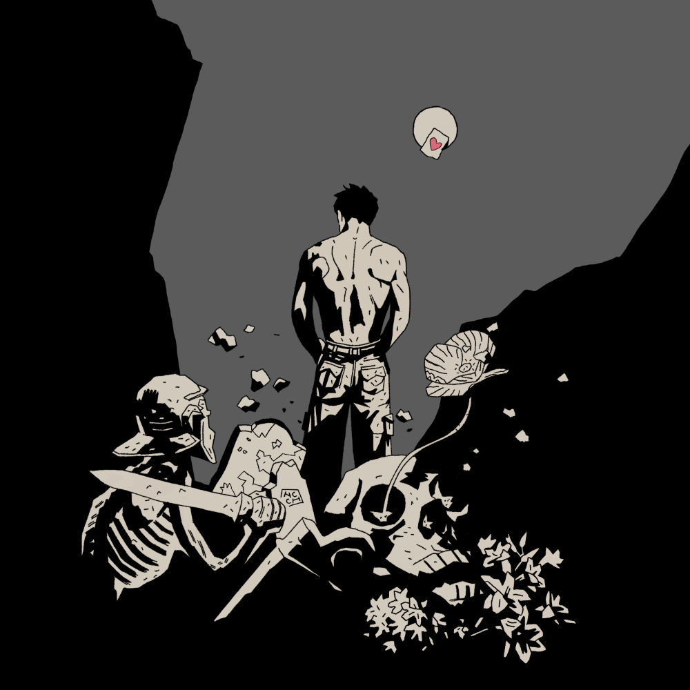 Este proyecto consistió en reinterpretar visualmente la canción “Si te vas…” de Extremoduro, partiendo de un análisis profundo de su letra para crear una escena cargada de simbolismo. Me basé en el estilo gráfico de Mike Mignola, comenzando con un boceto físico que luego digitalicé. Me fijé especialmente en sus composiciones de Hellboy, con sombras rotundas y fondos dramáticos.