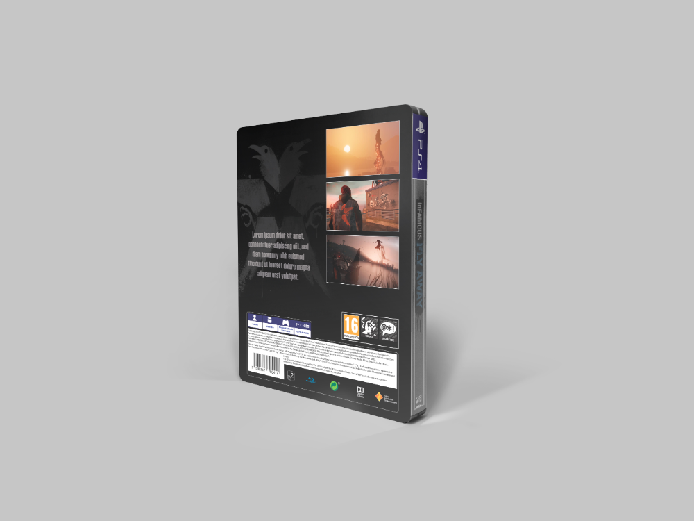 Este fue el trabajo final de la asignatura de Técnicas de expresión gráfico plásticas, donde teníamos que crear una pieza final y 2 adaptaciones para un videojuego, película, canción… ya existentes o una versión nuestra. Yo decidí hacer la ilustración de la portada del videojuego al estilo Banksy y como adaptación la caja del Steelbook y el merchandising que se iba a vender en la versión coleccionista.